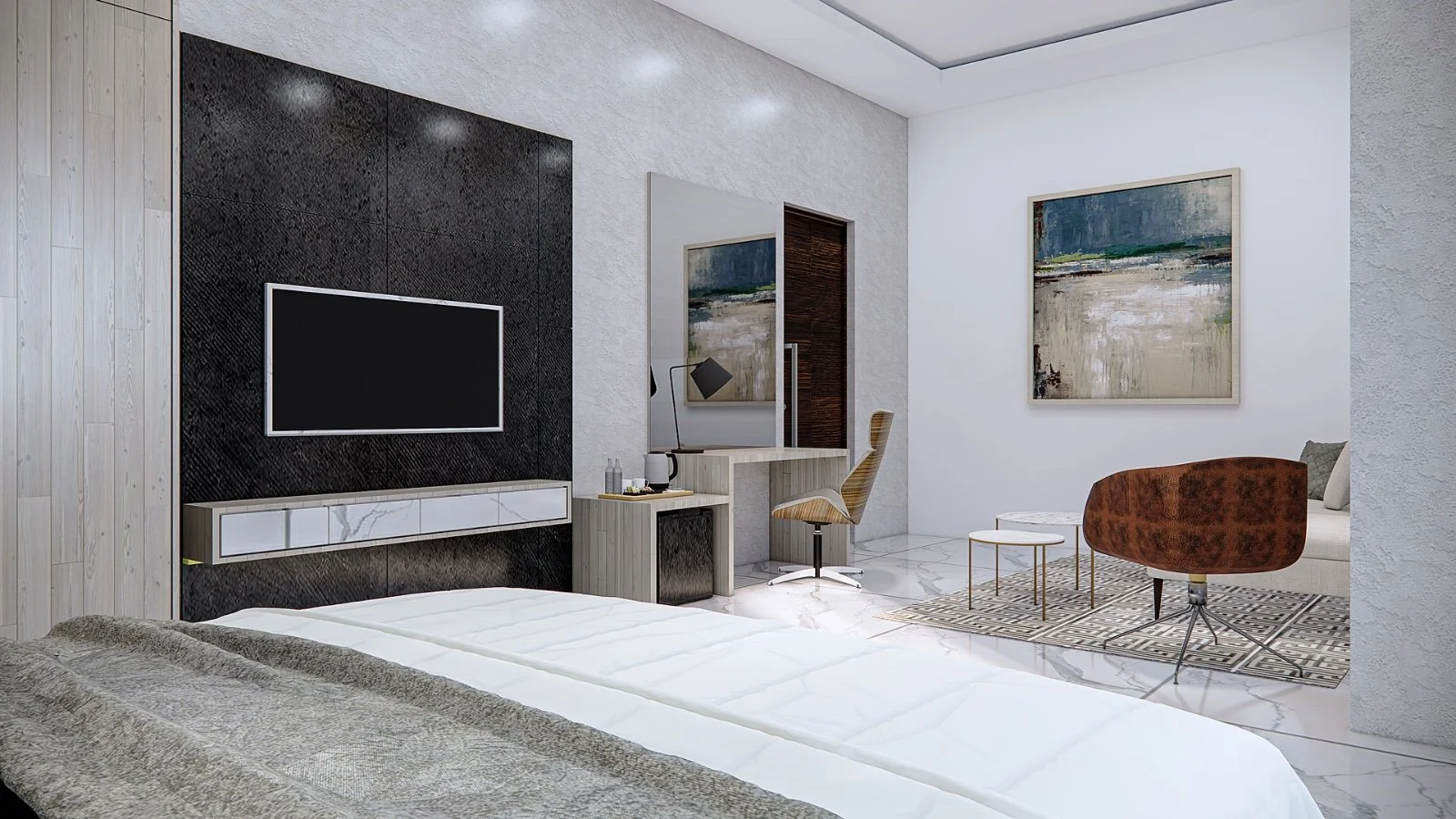 Rosann Hotel is designed as an upscale extension of an existing three-star hotel. This new wing offers elegantly furnished luxury suites with plush bedding, stylish living areas, and modern spa-inspired bathrooms.