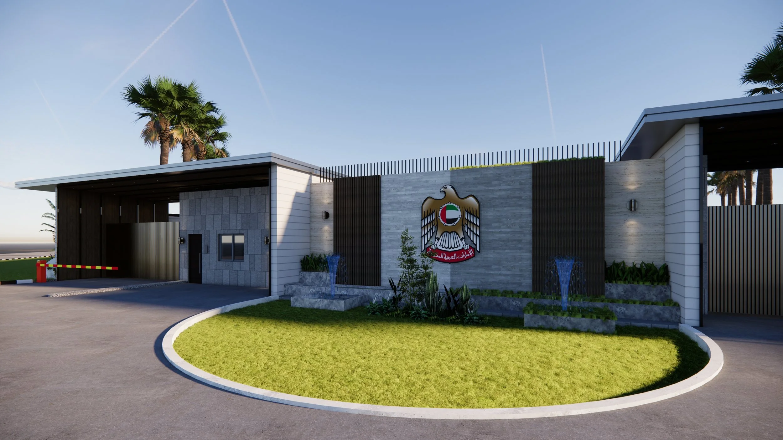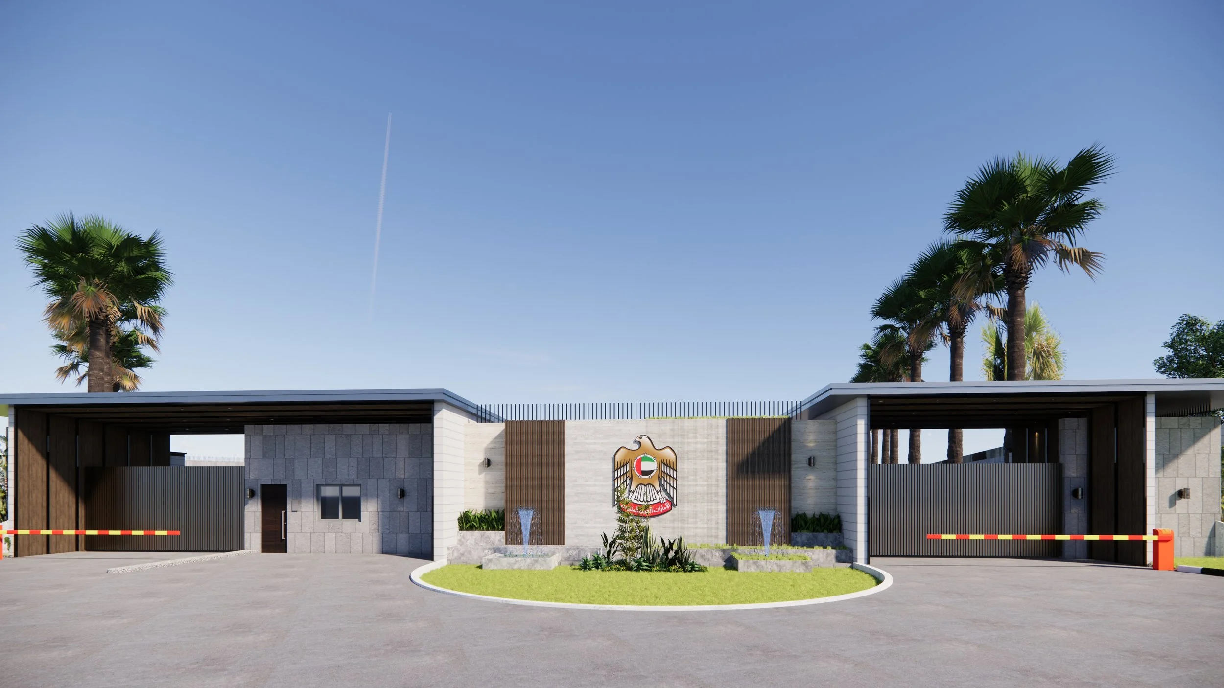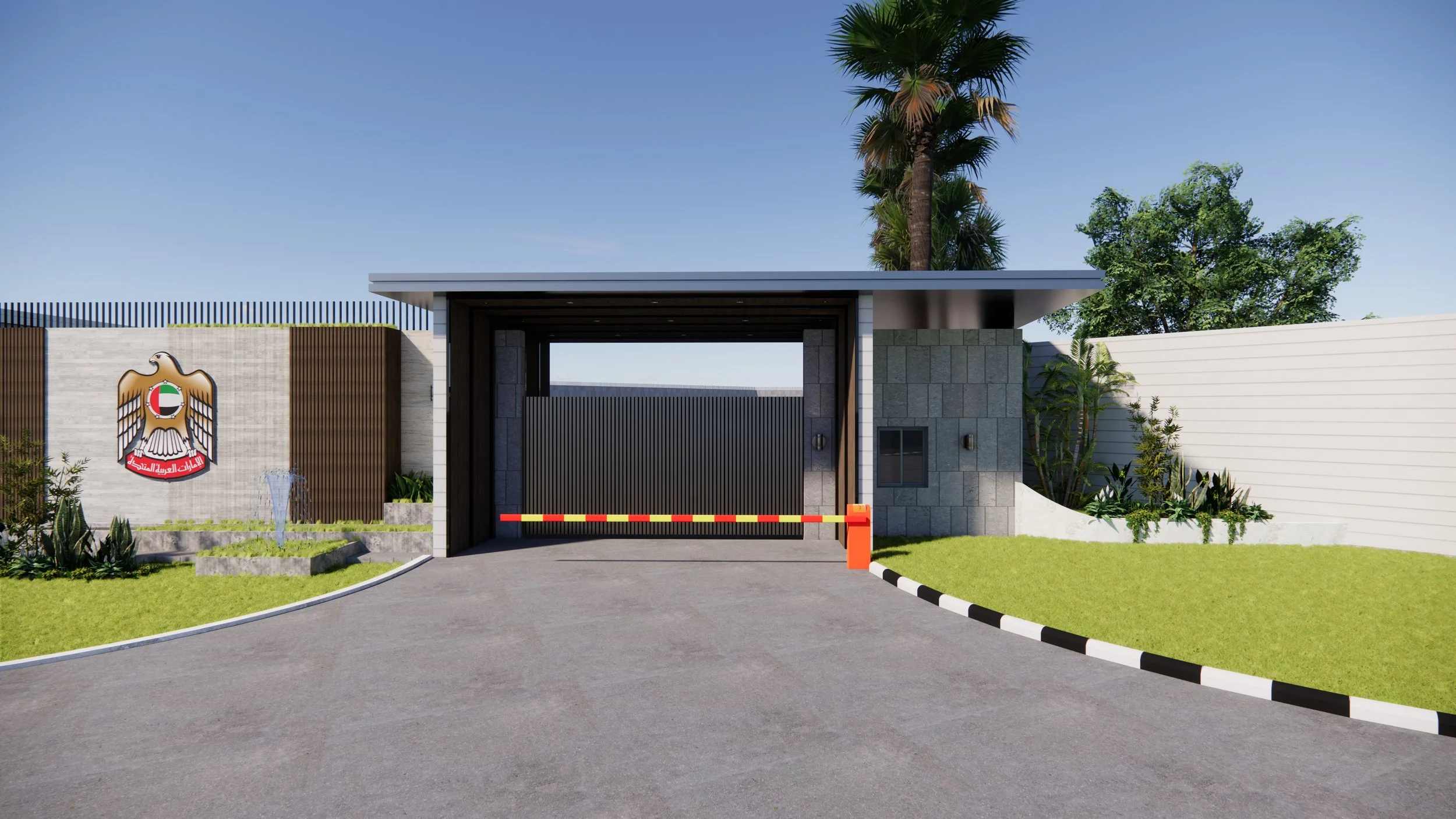 This project involves the design and construction of a secure and functional perimeter fence for the new United Arab Emirates Embassy Complex in Abuja. Covering approximately 5,016 sqm, the design proposal includes a well-planned layout integrating key security and operational spaces. These include the entry and exit gates, a security checkpoint with restroom facilities, and an electrical room. The design prioritizes security, accessibility, and architectural harmony with the embassy’s overall aesthetic.
